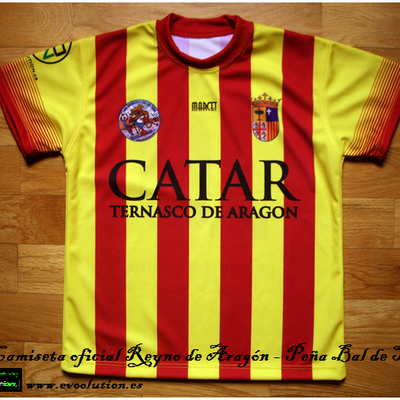 Si relacionabas la camiseta que viene a continuación con una determinada Comunidad Autónoma, te equivocabas. En realidad esta es la camiseta de la Corona de Aragón, y puedes serigrafiarte en ella tu nombre en la espalda (o el de "Fernando el Católico" que mola más). La puedes encontrar en evoolution.es